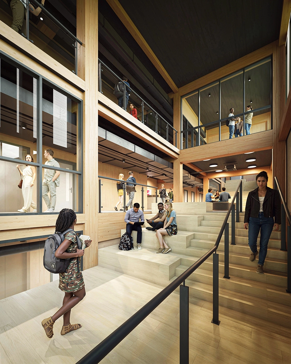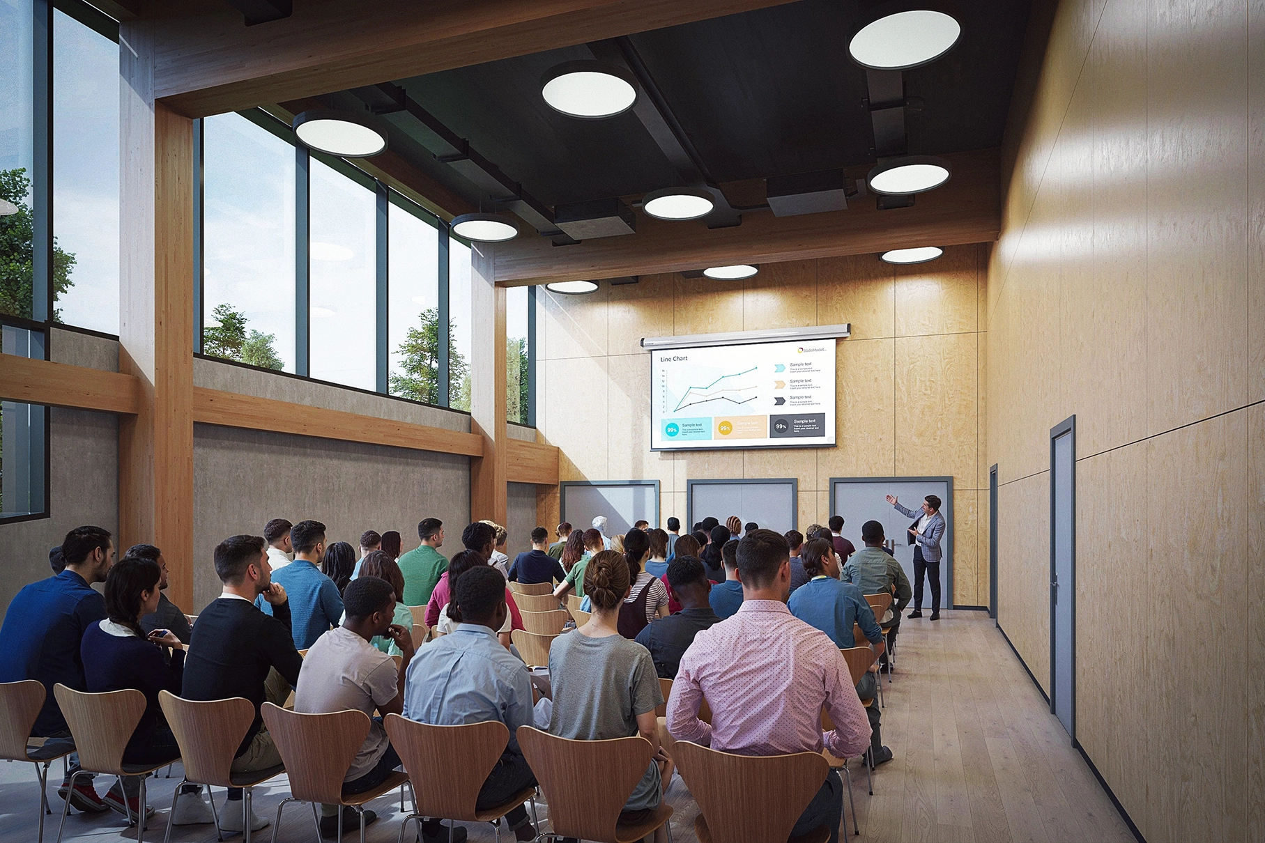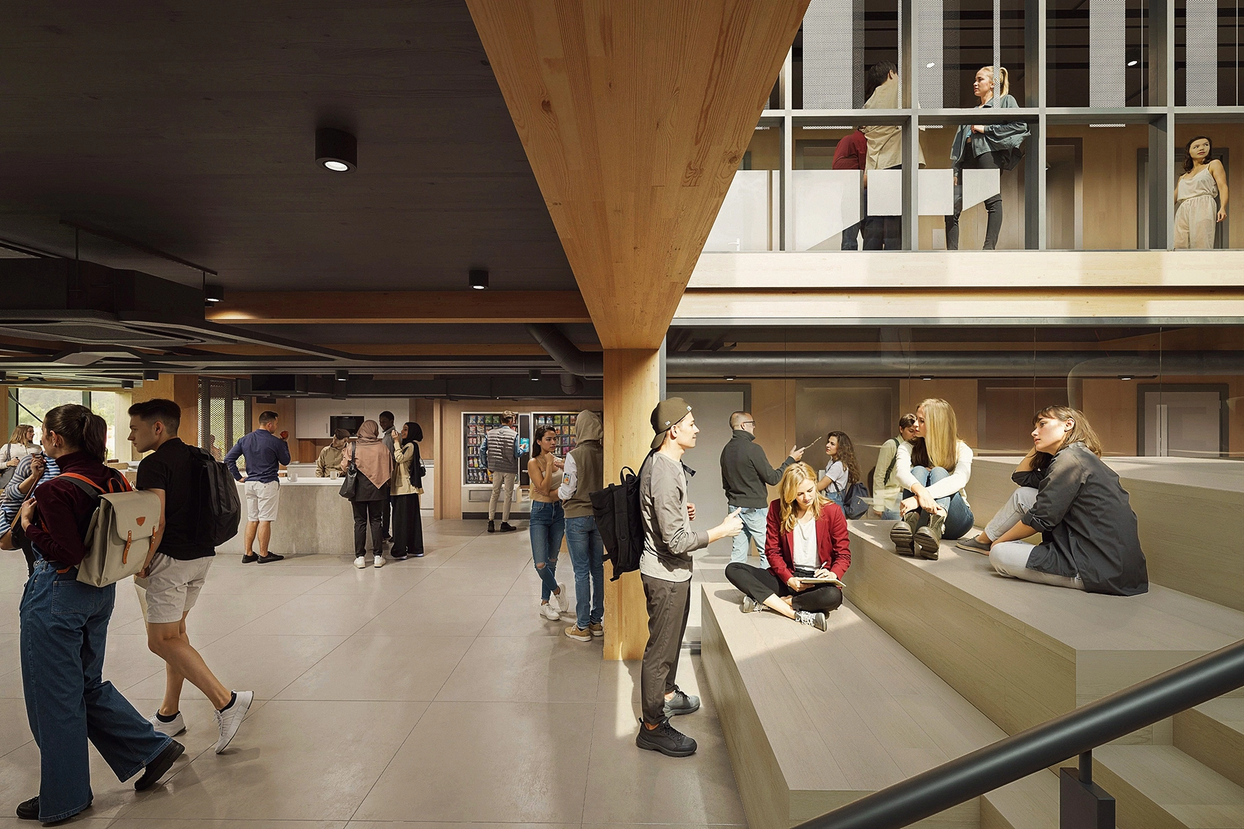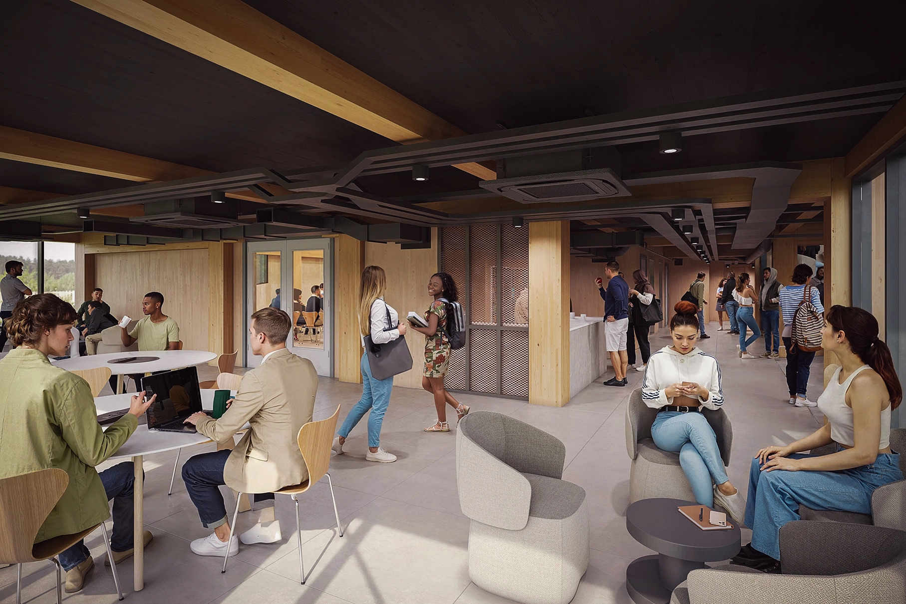 Corstorphine and Wright's impression of the Village Hub's internal finishes