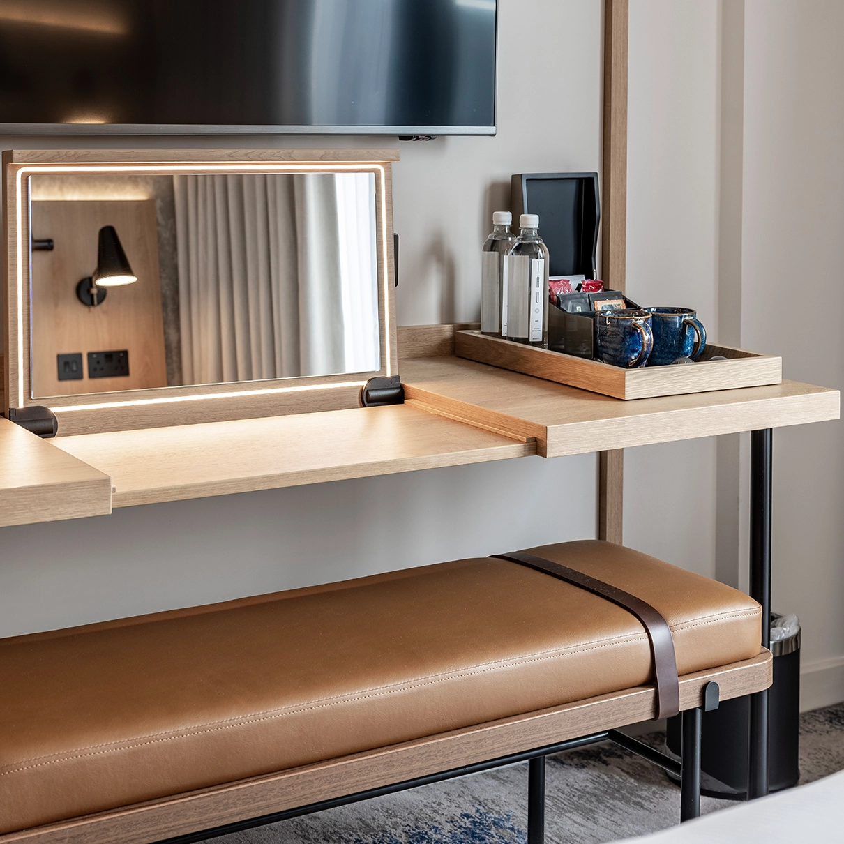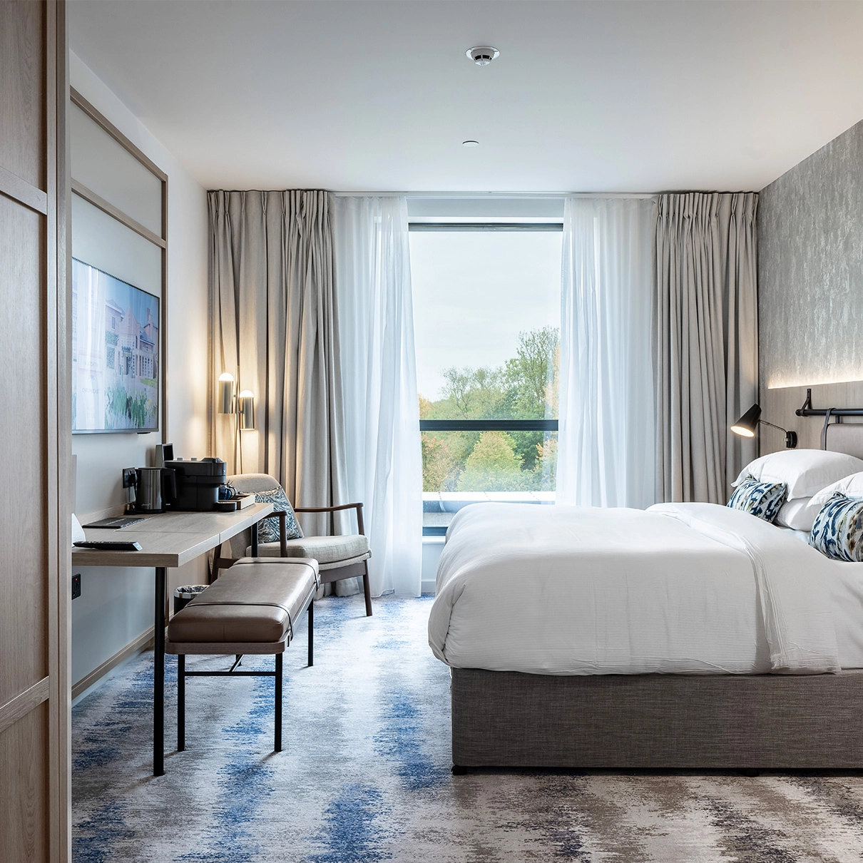 Key features such as wall panelling, colour palettes, and material choices were retained to preserve the hotel’s established identity, with subtle updates introduced to improve functionality without straying from the agreed aesthetic