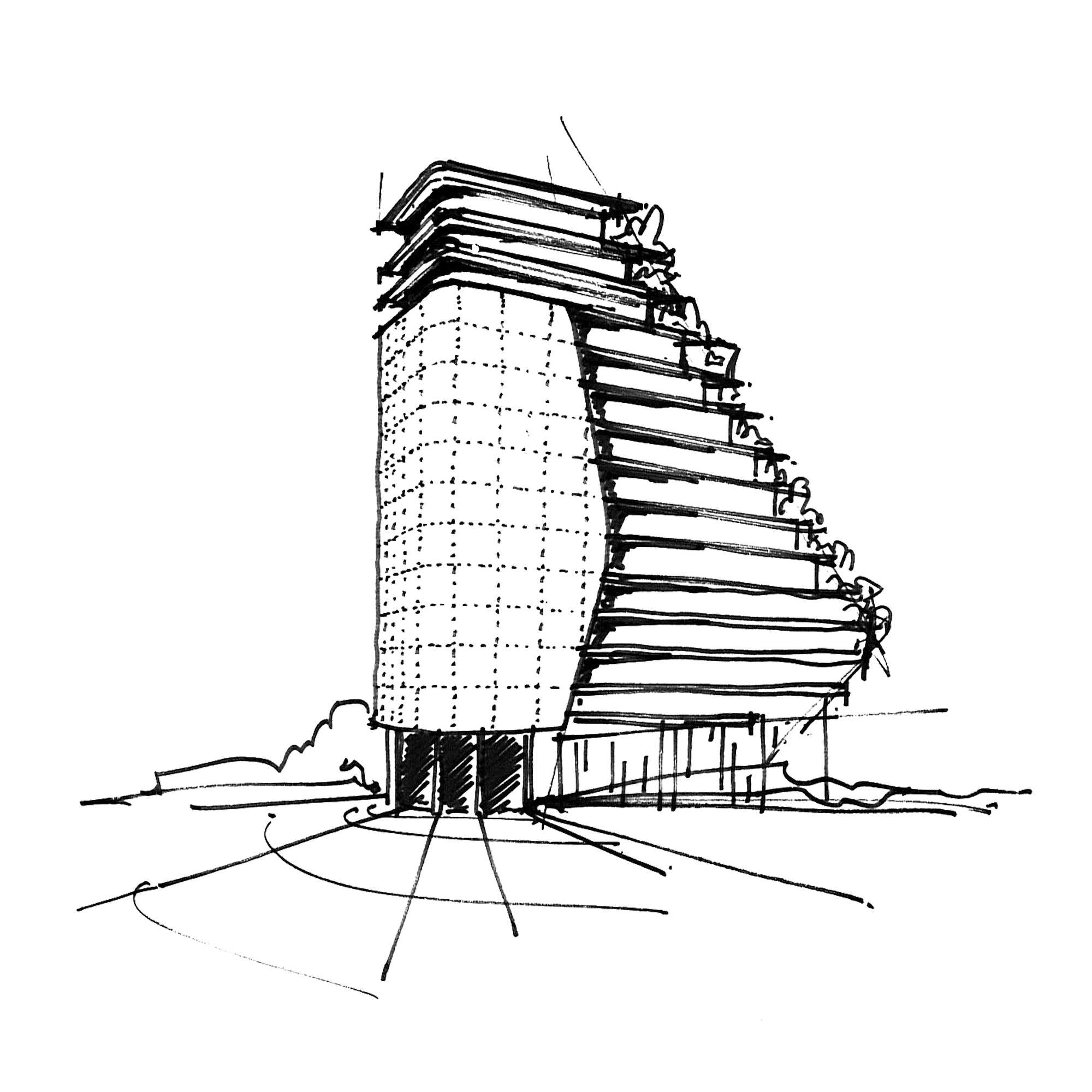 Substantial planting around the terraced edges reinforce the concept of vertical landscaped buildings emerging up from the gardens below. This planting serves to soften the dynamic form of the buildings, but also responds to a reoccurring characteristic in and around Bournemouth of buildings set against and within a rising verdant landscape.